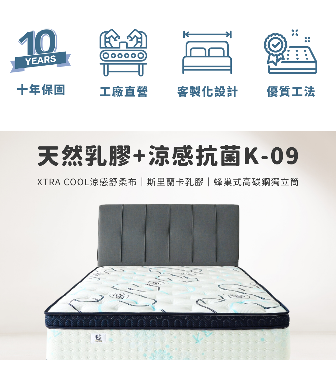 【乳膠獨立筒床墊】天然乳膠+涼感抗菌K-09
